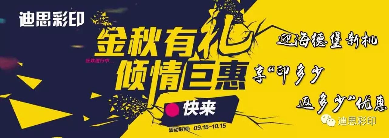 好消息,虽然纸张价格一路猛涨,但迪思彩印不仅没有涨价,为了回馈新老客户,还在9月15日-10月15日推出“全新海德堡,做多少,返多少”优惠活动,